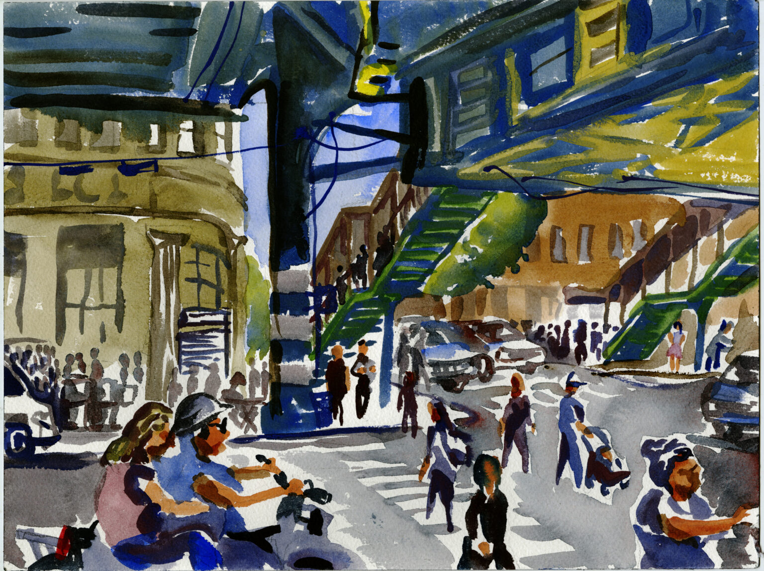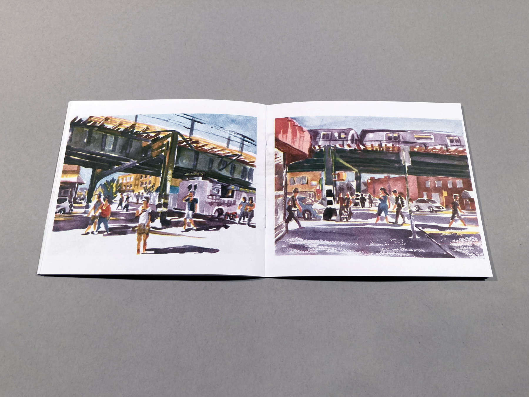 Between 2022 and 2024 I visited locations alongRoosevelt Avenue to paint watercolors on site. The street has fascinated me since I moved to New York City in 1988. Below are some of the paintings I created, which I reproduced in a small risograph book.